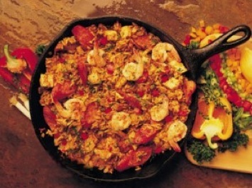 Remove the chaurice from its casing and sauté until browned, breaking up into the consistency of ground meat. Add andouille, tasso, onion, celery and bell pepper and continue sautéing until all ingredients are browned (about 20 minutes). Add rice and stir together for 3 – 4 minutes. Add remainder of ingredients and bring to a boil, then cover and reduce to a simmer. Cook without stirring for 25 minutes. Using a fork, add the green onions, fluffing into the rice. Cover and cook another 5 minutes before serving.